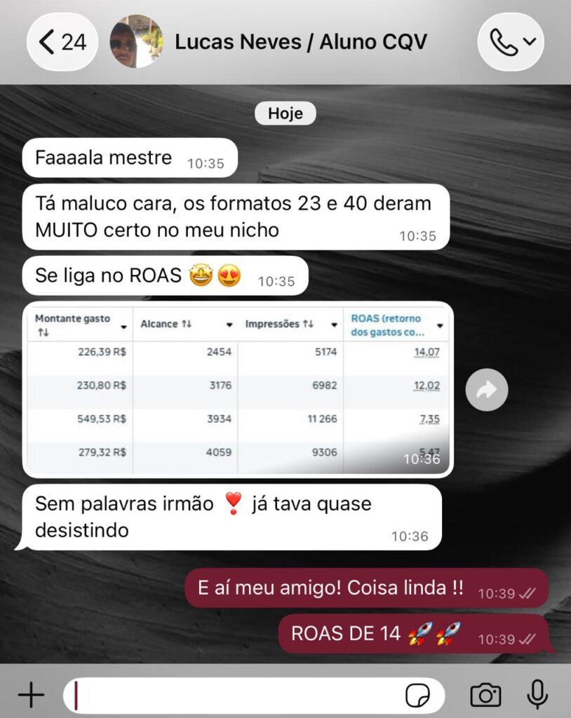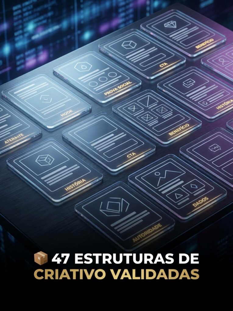Mais de 47 estruturas visuais e de copy validadas em campanhas que já geraram mais de 20 milhões, prontas para copiar, adaptar e publicar ainda hoje.